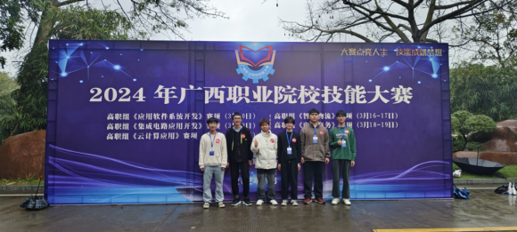 2024年3月10日,由自治区教育厅主办的广西职业院校技能大赛高职组《应用软件系统开发》赛项在南宁举行。本次大赛,有来自广西区内33所高职院校的63支参赛队伍,共189位相关专业选手同台竞技,奋力拼搏。经过六个小时的激烈角逐,信息工程学院由计算机应用技术专业的邓永宏、蒋杰和软件技术专业的廖绍可组成的队伍,在沈俊蓉、樊永亮老师精心指导下,斩获一等奖。由计算机应用技术专业的徐志昆及软件技术专业的陈斌辉、杨显锴组成的队伍,在覃大创、刘春霞老师的悉心指导下,获得了二等奖。
