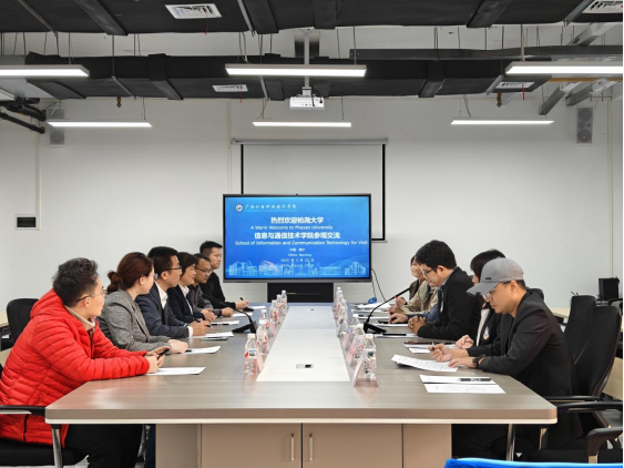 2025年3月22日上午8:30,泰国帕尧大学信息与通信技术学院院长Pornthep Rojanavasu博士率代表团到访我院。我院院长张泽民、党委副书记覃媛、办公室主任王俊雷以及专任教师代表等人出席会议。双方在我院A7三楼会议室举行座谈会,会议由张泽民院长主持。
