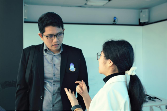 会上,张院长通过双语宣传片向泰方代表团全面介绍了学院的专业建设、师资力量和实训基地情况,并分享了与新加坡南洋理工大学等国际院校的合作经验。泰国帕尧大学代表团详细介绍了该校的学科专业设置情况,包括本科、硕士和博士层次的学位项目,以及国际留学生的招收培养情况。双方就短期学生交流、实训资源共享等议题展开了建设性讨论。
