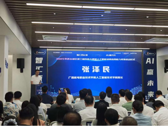 在2025年9月26日举行的西乡塘区第三届创业大赛暨人工智能场景应用能力竞赛启动仪式上,开云kaiyun官方网站作为承办方,由我院院长张泽民代表学校出席并发表了讲话。张泽民院长在仪式上强调了学院在推动专业发展和区域人工智能发展方面的不懈努力和显著成就。