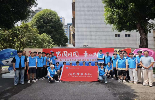 2025年9月27日,由南宁市青少年活动中心主办,以“家国同圆 童心共梦”为主题的庆国庆迎中秋主题活动在南宁市青少年活动中心明秀宫红领巾广场举行。由罗永杰老师负责组织带领30名青年志愿者参与到活动的志愿服务当中,本次志愿服务活动得到了张泽民大师工作室的大力支持。志愿者们以饱满的热情和专业的服务,助力南宁市青少年庆国庆迎中秋主题活动取得圆满成功。