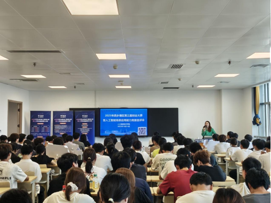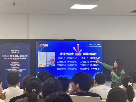 大赛负责人颜新秀则聚焦竞赛本身,对本次创业大赛暨人工智能场景应用能力竞赛的赛事规则、参与价值及发展机遇进行深入解读。她指出,参与大赛对学生而言是“零成本高回报”的成长机会:不仅能免费对接人才、资本、产业资源,优秀项目还可获得丰厚奖金;更重要的是,同学们能在备赛过程中锻炼创新思维、团队协作能力,将想法转化为实践方案,为未来就业或创业积累宝贵经验,提前适应AI时代的发展需求。