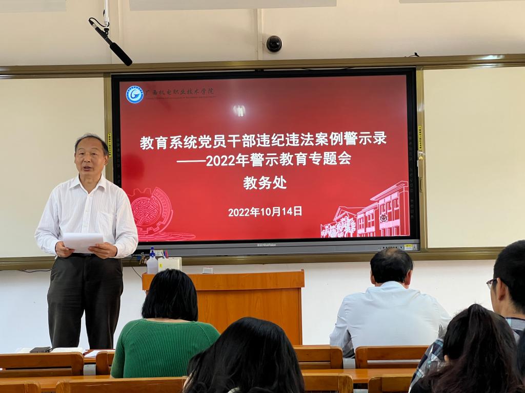 10月15日,为深入开展警示教育活动,提高广大教职工的自身修养以及响应学校“清廉学校”建设的号召,教务处在第六教学楼开展部门的清廉教育专题会暨教育系统党员干部违纪违法案例警示教育会。会议由教务处处长张群生主持,教务处副处长李广兴、周运金等人出席会议。