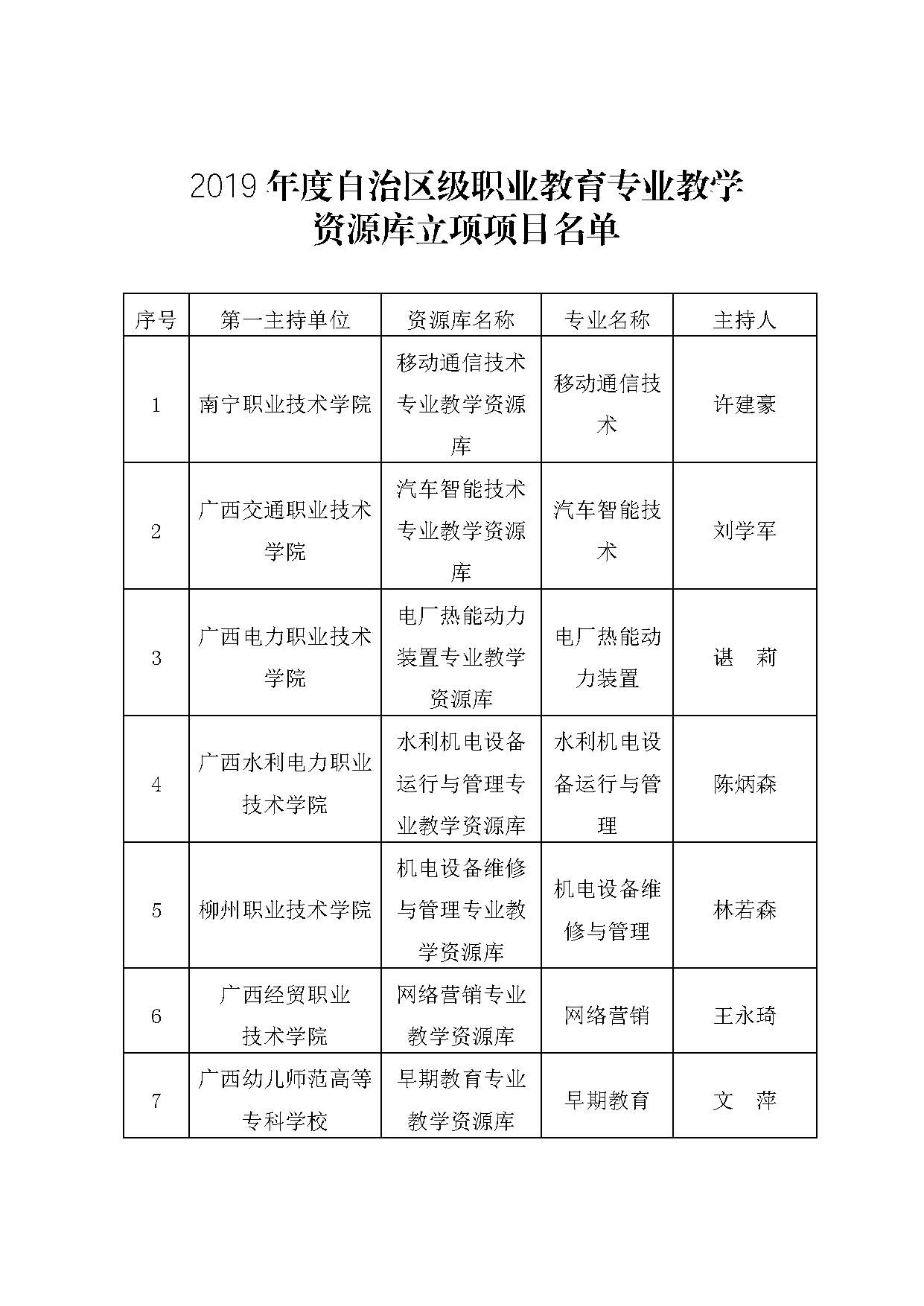 关于公布2019年度自治区级职业教育专业教学资源库立项项目名单的通知