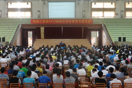 9月11日上午,我系2013级新生入学教育首场讲座在学院体育馆举行。系主任叶克力、党总支副书记林胜、团总支书记李育好、学生辅导员和全体新生参加了本次讲座。