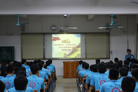 为学习贯彻落实党的十九大精神,4月1号晚上在5101教室由我系学生会主席邓薪铭和团委副书记周克鲁同学开展“走进新时代,机械新实践”十九大宣讲活动。