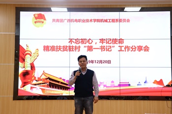 12月20日,机械工程系在博远楼第二报告厅举办扶贫“第一书记”工作分享会,系党总支副书记、系团委书记、扶贫“第一书记”邓火生老师以及机械系100名学生代表参加了活动。
