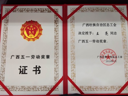 正是如此无私的奉献,王亮被授予今年的广西五一劳动奖章,评为“百年五四·龙城青年好榜样”。对于这些荣誉,王亮说:“感谢组织给予的荣誉,也感谢母校的培养。”