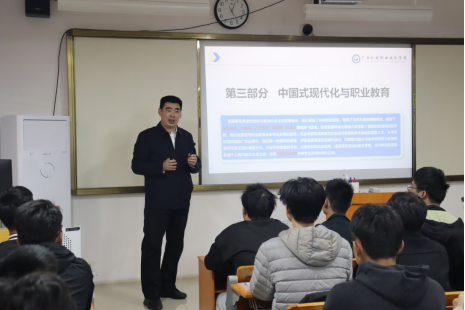 课上,黄小敬书记运用先进典型的感人事迹、杰出校友的榜样故事,激发大学生的爱国之情、砥砺报国之志;运用鲜活的事实、生动的数据展示新时代十年的伟大变革和职业教育的快速发展,展示了学校高质量发展的重要成果,鼓励同学们面对疫情的新变化有实力、有底气、有斗志,在无比广阔的新时代舞台上施展才干,努力书写新时代青年的奋斗篇章。