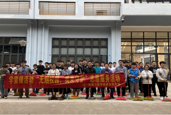 为大力弘扬雷锋精神,更好地引导学生了解雷锋事迹,以雷锋为榜样,争做新时代志愿者,倡导校园文明新风,进一步推进机械工程学院“无烟校园”活动的创建,2023年3月10日,机械工程学院学生党支部开展“无烟校园,我来守护”学雷锋主题党日活动。