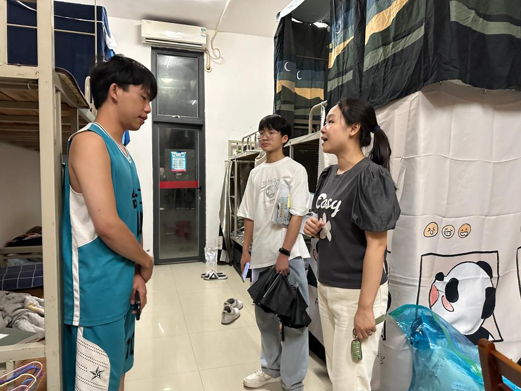 学院领导和辅导员们十分重视新生刚入学的思想动态和实际诉求,晚上前往宿舍亲切看望了2023级新生。学院领导和辅导员与同学们进行了亲切交流,并嘱咐同学们要尽快融入新的学习生活中,全方位提升自己,不负青春、不负韶华。