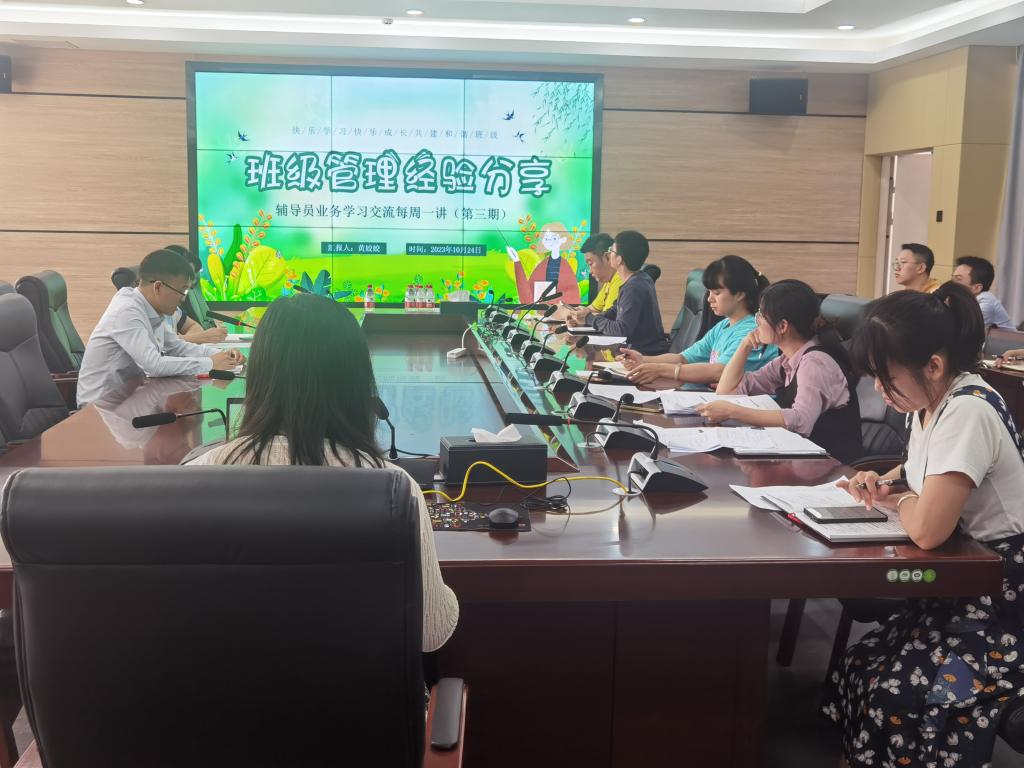 为深入贯彻落实全国高校思想政治工作会议精神和党的二十大精神,切实加强机械工程学院辅导员队伍专业化职业化建设。机械工程学院于10月24日中午12点在笃行楼507会议室开展了辅导员业务交流学习第三期活动。第三期业务交流学习活动由机械工程学院辅导员黄姣姣老师主讲,党委副书记、副院长文小满和全体专、兼职辅导员参加。