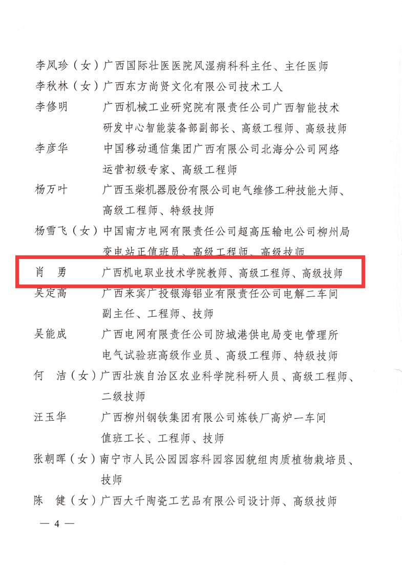 3月5日,由自治区总工会、自治区工业和信息化厅、自治区科学技术厅、自治区人力资源和社会保障厅主办,广西广播电视台综合频道承办的2023年“广西工匠”年度人物发布活动在南宁举行,揭晓了2023年选树的40名“广西工匠”。开云机械工程学院教师肖勇荣获“广西工匠”称号。