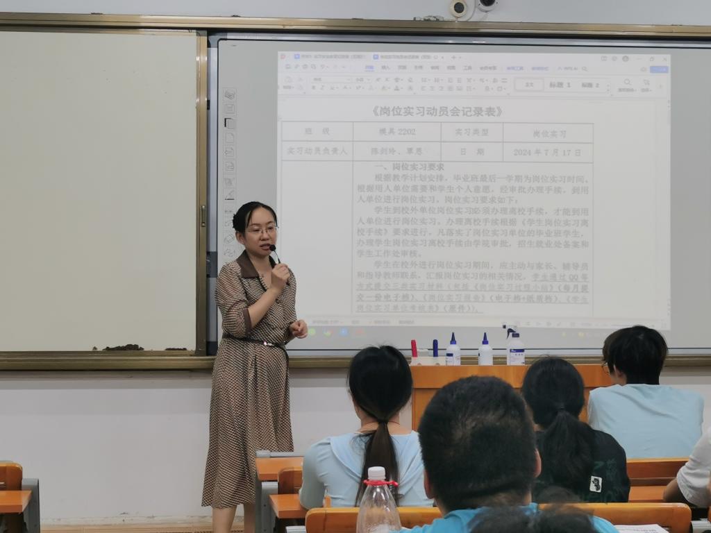 为促进岗位实习工作的顺利开展,强化实习管理,明确实习任务,确保实习质量,近日,我院模具设计与制造专业团队以班级为单位召开了2022级实习动员暨安全教育大会。实习指导教师、辅导员及2022级全体学生参加了会议。