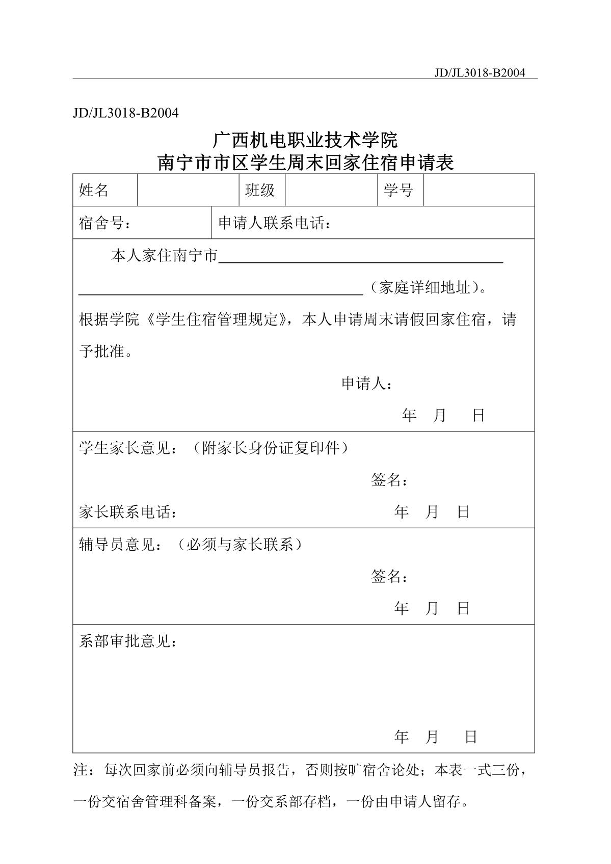 开云kaiyun官方网站南宁市市区学生周末回家住宿申请表