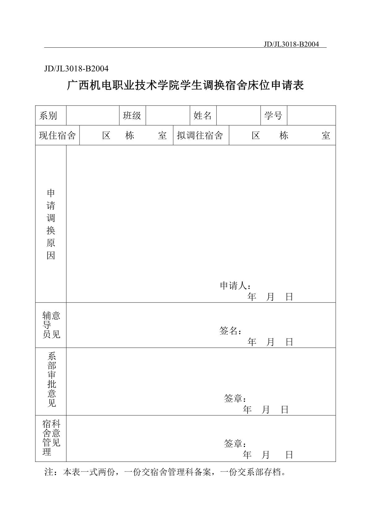 开云kaiyun官方网站学生调换宿舍床位申请表