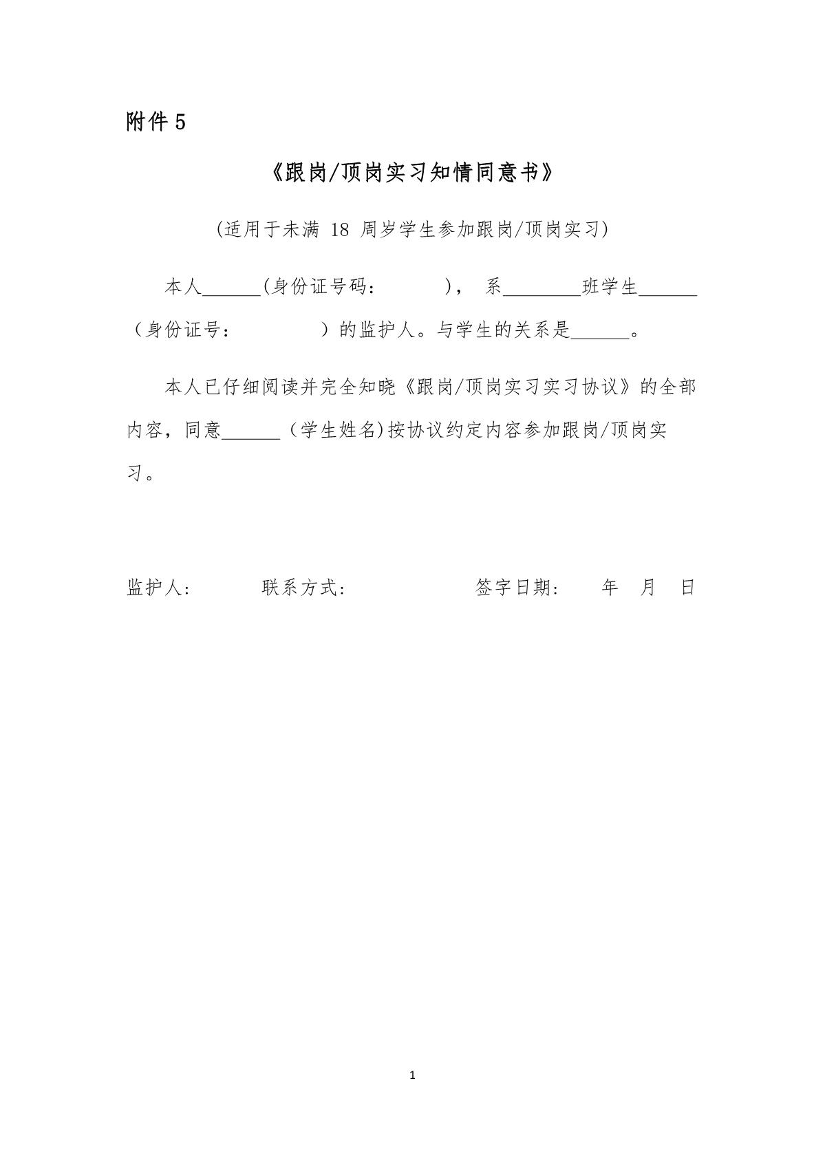 《跟岗顶岗实习知情同意书》