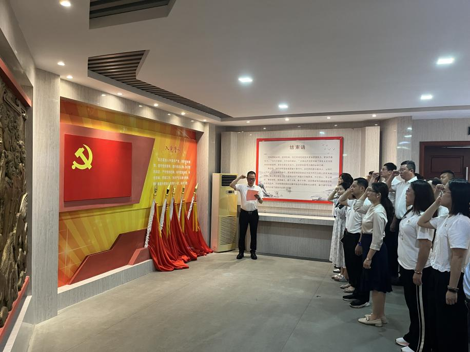 最后,全体党员进行入党宣誓。刘捷同志带领全体党员开展入党宣誓,重温入党誓词。大家怀着无比崇敬的心情,整齐列队、神情肃穆、举起右拳,面向鲜红的党旗庄严宣誓,一句句神圣而豪迈的誓言,体现了全体党员对中国共产党的无限忠诚。