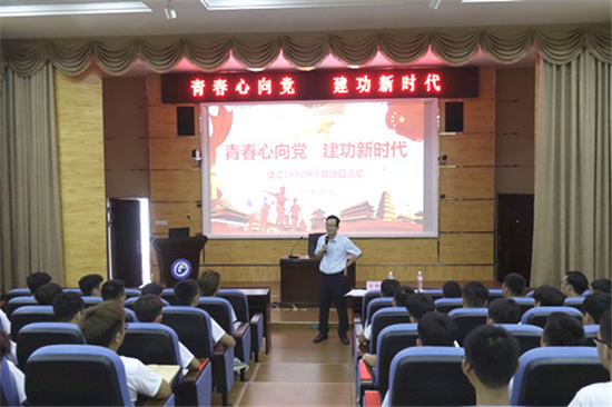 团课上,建工1802班副班长王有俊同学以“青春心向党,建功新时代”为题,从“不忘初心,同学党历史”,“牢记使命,青春心向党”,“行动明志,建功新时代”等三方面和同学们分享了心得体会。
