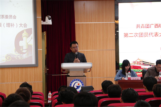 2019年11月22日晚,我系在博远楼五楼一号报告厅举行第二次团员代表大会暨第十二次学生代表大会会议。系党总支书记刘义军、系团委书记覃媛及总支委员、学生党支部委员、学工秘书、学院团委及学生会学生负责人、18级、19级团员代表等共计150余人参加了会议。大会由我系第十一届学生会主席黄智明主持。