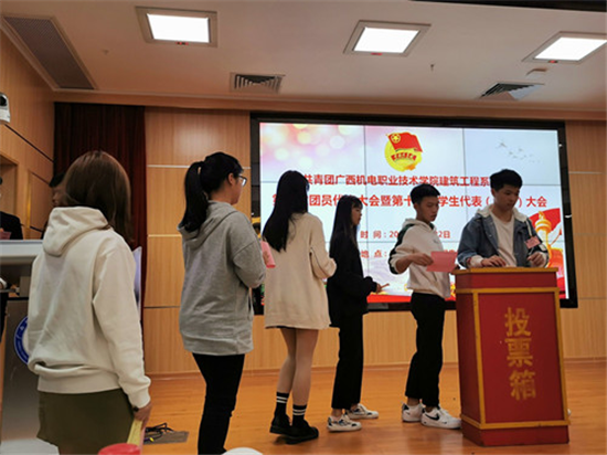 经过经过全体与会代表的民主选举,大会最终选举产生了莫中英、陈锋文等我系第二届团委委员、第十二届学生会主席团成员。由第二届团委委员曾维永代表宣读了《倡议书》,系团委书记覃媛致大会闭幕词,在中国共青团团歌歌声中,大会顺利落下帷幕。