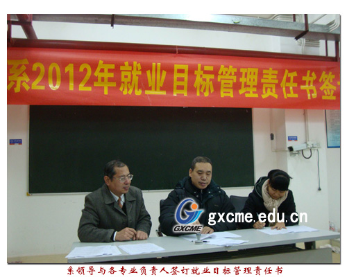 最后,各专业负责人依次上台签订了2012年就业工作责任书。