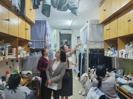 各组每到一间宿舍都仔细检查房间的卫生状况、网络及用电安全等,同时询问学生对宿舍管理的满意度和改进建议,全面排查宿舍安全隐患,筑牢校园安全防线。