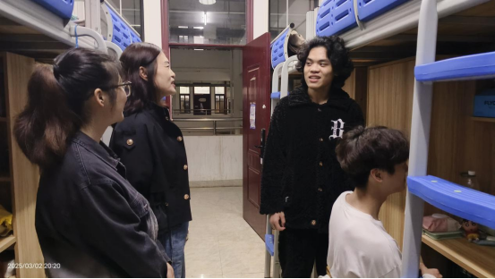 3月2日,学院党委书记罗满,院长李哲,副书记卜庭梅,副院长郭容宽、吴宝勇、许艳旗分组带领学工团队到学生宿舍进行走访巡查,掌握各班学生返校情况,以及深入了解学生思想动态和生活需求,强化思想引导与人文关怀。