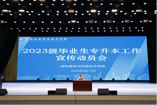 为帮助2023级学生深入了解专升本政策、明确备考方向、激发升学热情,6月17日,绿色建筑与低碳技术学院在弘毅楼大礼堂召开2023级学生专升本考试动员会。学院党委书记罗满、副院长吴宝勇、学院团委书记、办公室主任、学工秘书、教学秘书、各教研室主任、专业带头人或负责人、2023级实习指导老师及辅导员、2023级全体学生参加会议,副书记卜庭梅主持会议,副院长郭容宽作讲解动员。