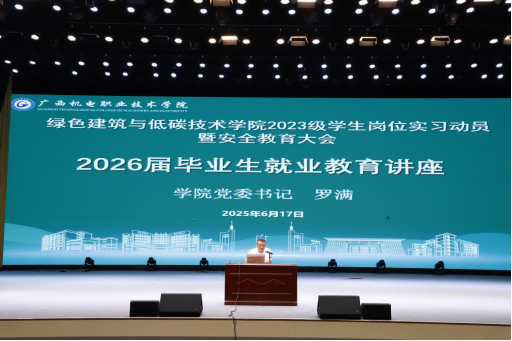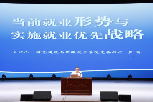 6月17日,绿色建筑与低碳技术学院在弘毅楼大礼堂举办2026届毕业生就业教育讲座。讲座由学院党委书记罗满主讲,副书记卜庭梅主持,2023级辅导员及2023级全体学生参加学习。