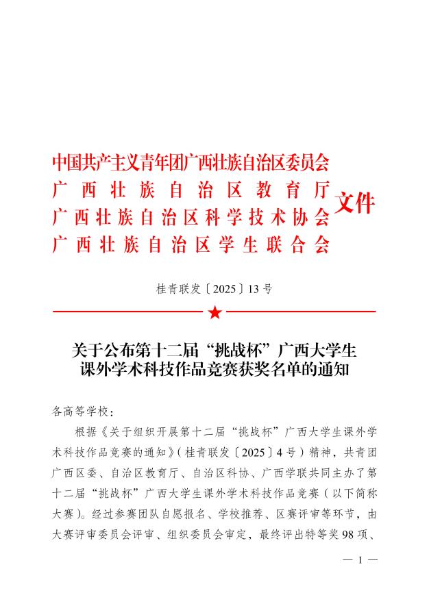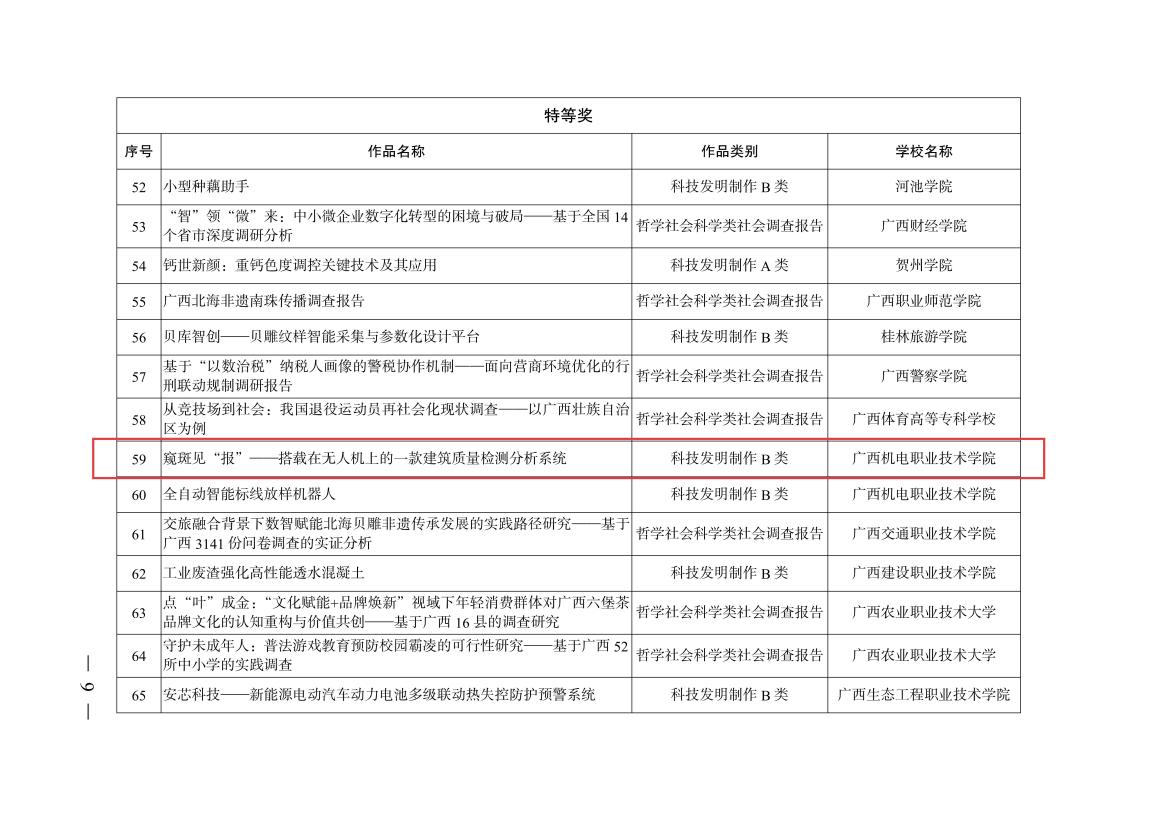 由我院工程造价教研室团队吴骏青老师指导的科技发明制作B类项目《窥斑见“报”——搭载在无人机上的一款建筑质量检测分析系统》在第十二届“挑战杯”广西大学生课外学术科技作品竞赛中获区赛特等奖的好成绩,顺利挺进国赛。
