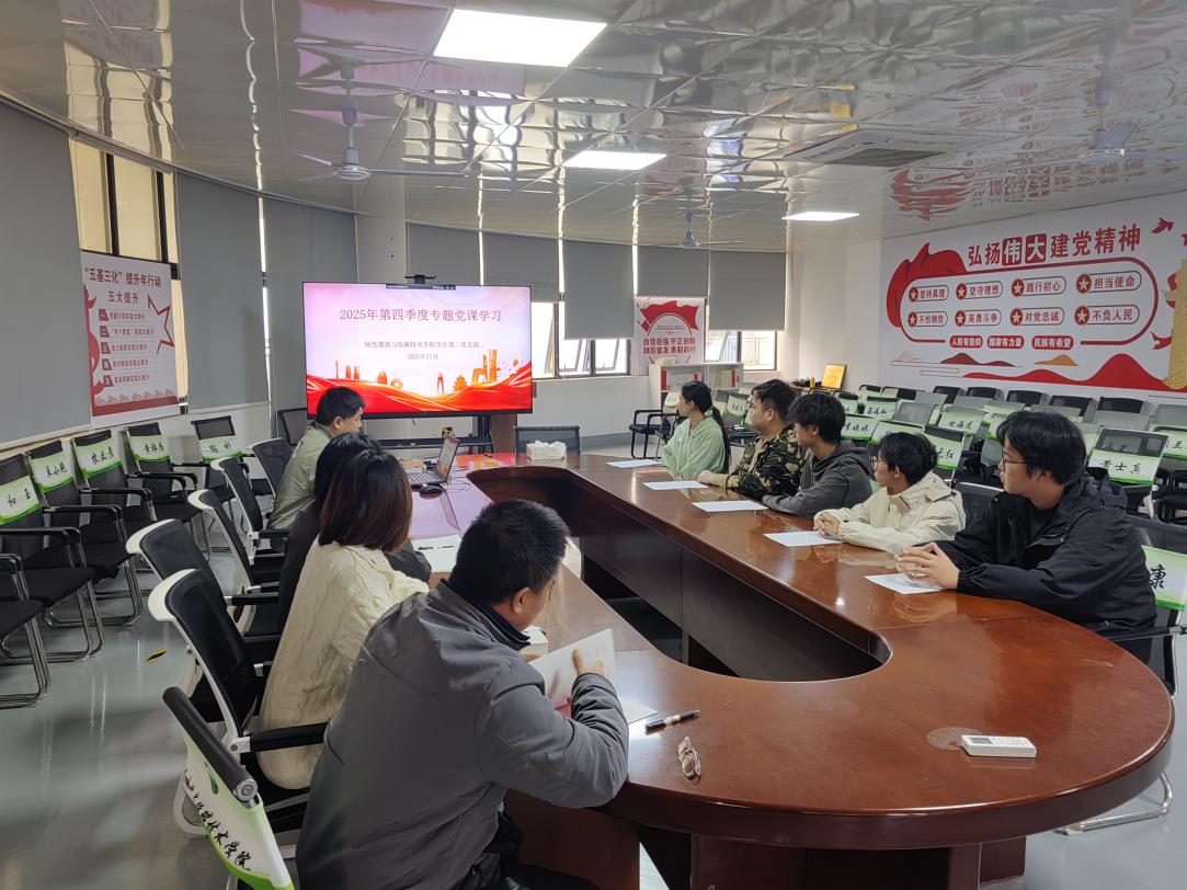 为深入学习贯彻习近平新时代中国特色社会主义思想,全面落实党的二十届四中全会精神,11月5日下午,学院学生第二党支部在明理楼206会议室开展以“淬炼党性葆初心、实干担当启新程”为主题的第四季度专题党课,学生第二党支部全体党员参加本次党课学习。