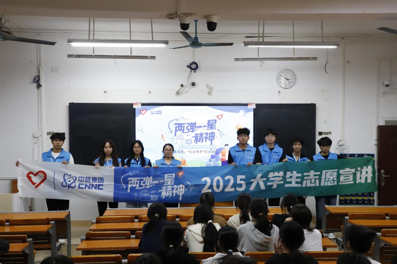 习近平总书记指出:“新时代的中国青年要以实现中华民族伟大复兴为己任,增强做中国人的志气、骨气、底气,不负时代,不负韶华,不负党和人民的殷切期望!”为加强团员青年的思想政治教育,培养同学们的民族自豪感和历史使命感,宣讲团成员围绕核工业重要代表人物、事业发展历程、历代领导人殷殷寄语及“两弹一星”精神弘扬路径四个核心维度系统开展宣讲。通过生动讲述王淦昌、彭士禄等核工业领域功勋科学家的感人事迹,清晰阐释“两弹一星”精神的形成脉络与核心内涵。宣讲过程中,团员代表全神贯注聆听、踊跃交流探讨,现场学习氛围浓厚。