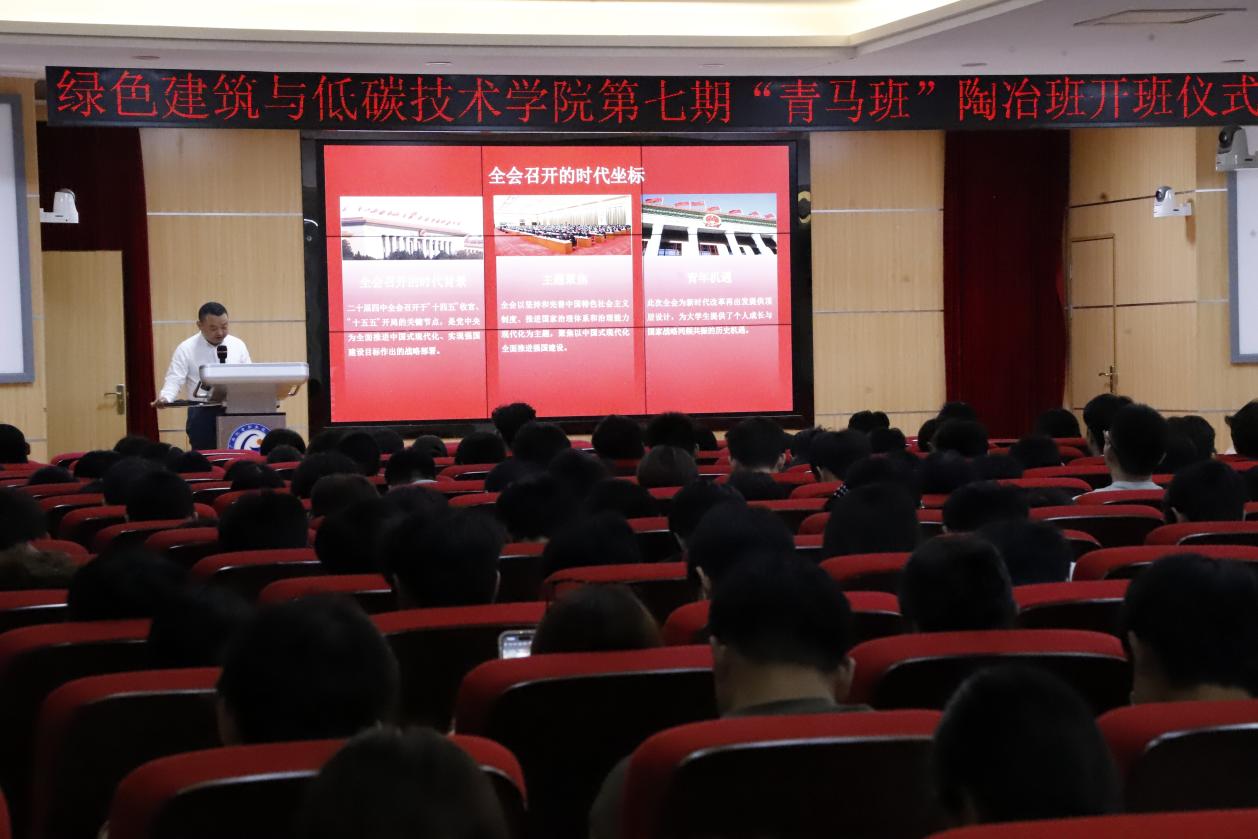 本次开班仪式在国歌中开启,在团歌中结束,表达了绿色建筑与低碳技术学院的青年们坚定不移跟党走跟团走的坚定信念,深入贯彻习近平总书记关于青年工作的重要思想,高扬理想主义,锐意开拓进取,勇于自我革命,在全面建设社会主义现代化国家、全面推进中华民族伟大复兴历史进程中,挺膺担当,团结奋斗。