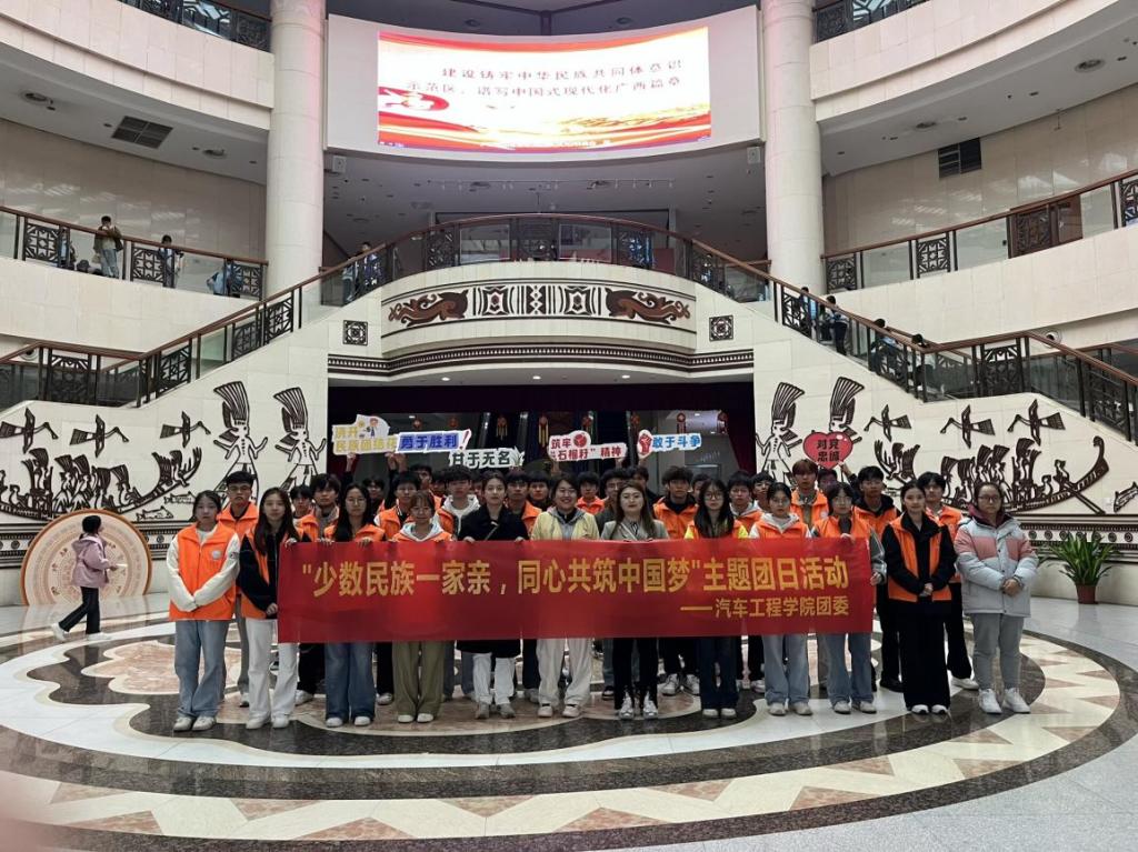 11月18日,由汽车工程学院团委主办的“民族团结一家亲,同心共筑中国梦”主题团日活动在广西民族博物馆举行。学院第七期“青马工程”陶冶班学员和入党积极分子代表参加活动。本次活动旨在引导青年学子铸牢中华民族共同体意识,进一步深化民族团结进步教育。