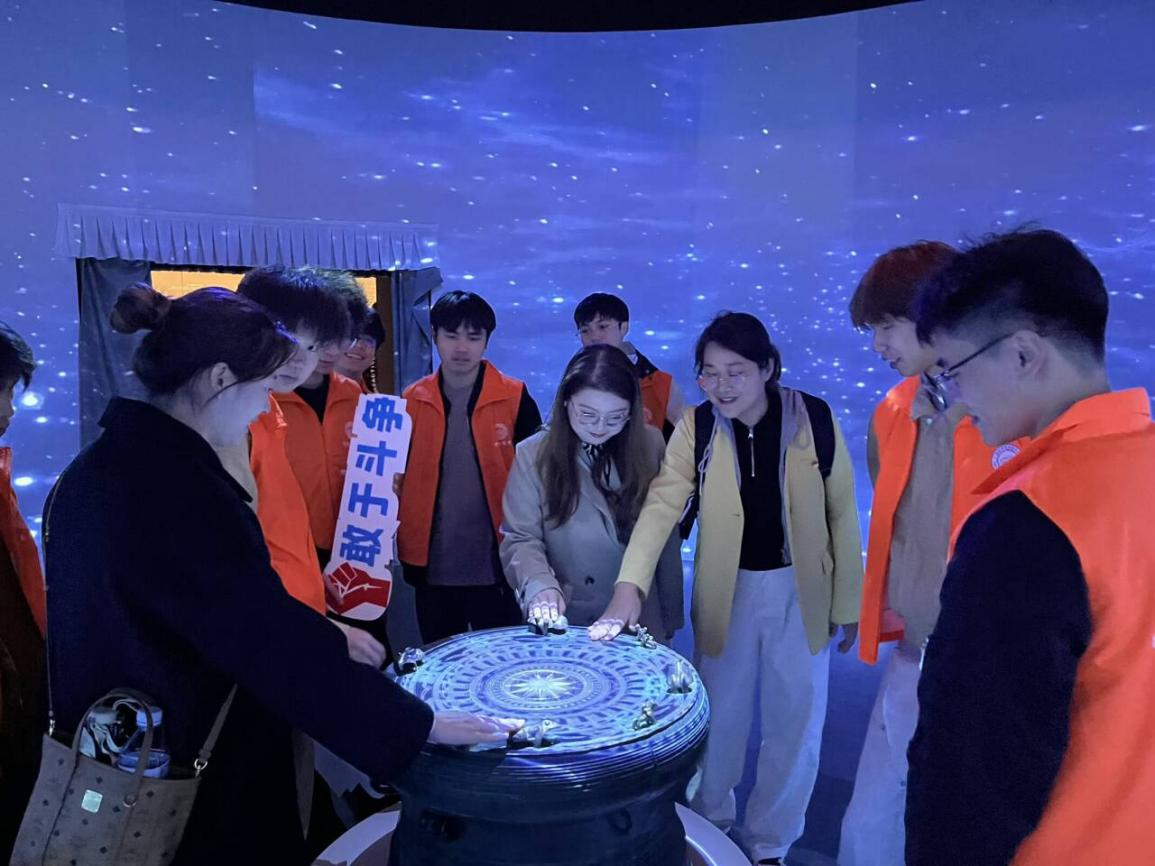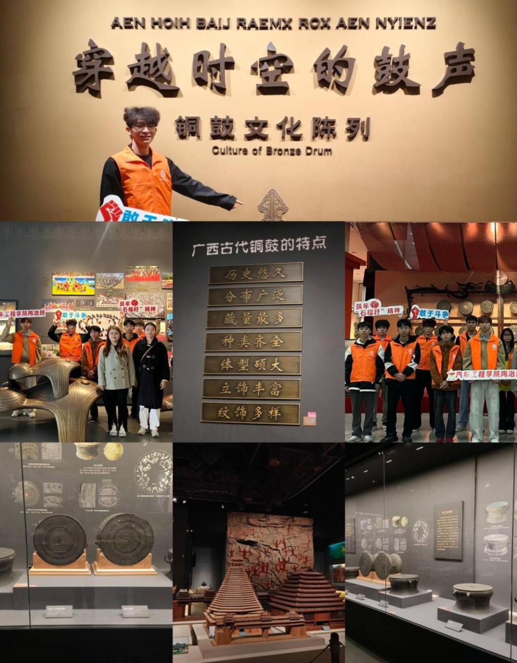 随后,师生们走进了“BEIXNUENGX(贝侬)——壮族文化展”,这是全国首个荣获精品奖的民族文化专题陈列。该展厅通过铜鼓、壮锦、民族服饰、壮医药等展品,系统地展示了壮族的历史与文化,以及各民族团结进步的累累硕果。在讲解员的讲述中,大家了解到“贝侬”是壮泰语里兄弟姐妹的谐音,又泛指所有亲密关系的人,体现了中华民族大家庭中成员之间如同兄弟姐妹般的紧密联系和深厚情感,突出铸牢中华民族共同体意识。