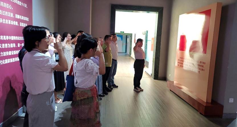 最后,党员们到了毛主席接见广西各族人民纪念馆进行参观学习,通过展出的一张张珍贵的历史照片和一件件带有岁月痕迹的历史文物,主动感悟广西波澜壮阔的发展历史。参观接近尾声时,全体党员同志们还在入党誓词前进行了重温誓词环节,用坚定有力的声音时刻提醒自己时一名党员,要时刻牢记自己的历史使命。