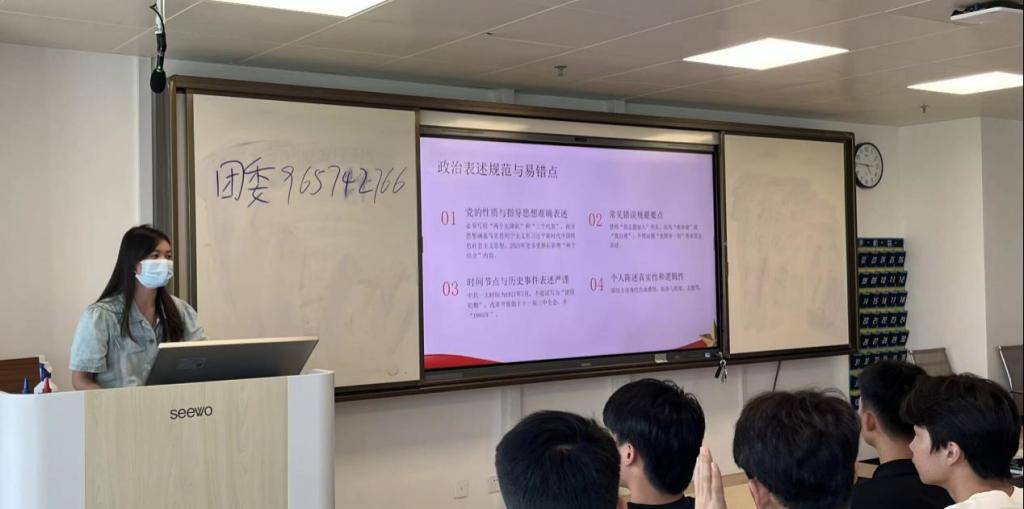 在入党申请书撰写指导环节,辅导员特别强调了政治表述的准确性和严肃性。从“两个先锋队”的性质表述,到指导思想的完整书写;从规范用语,到历史事件的准确表述,每一个细节都体现了入党教育的严谨性。这种规范教育不仅培养了学生们的政治素养,更引导他们从申请之初就树立正确的入党动机,理解入党的庄重性和严肃性。