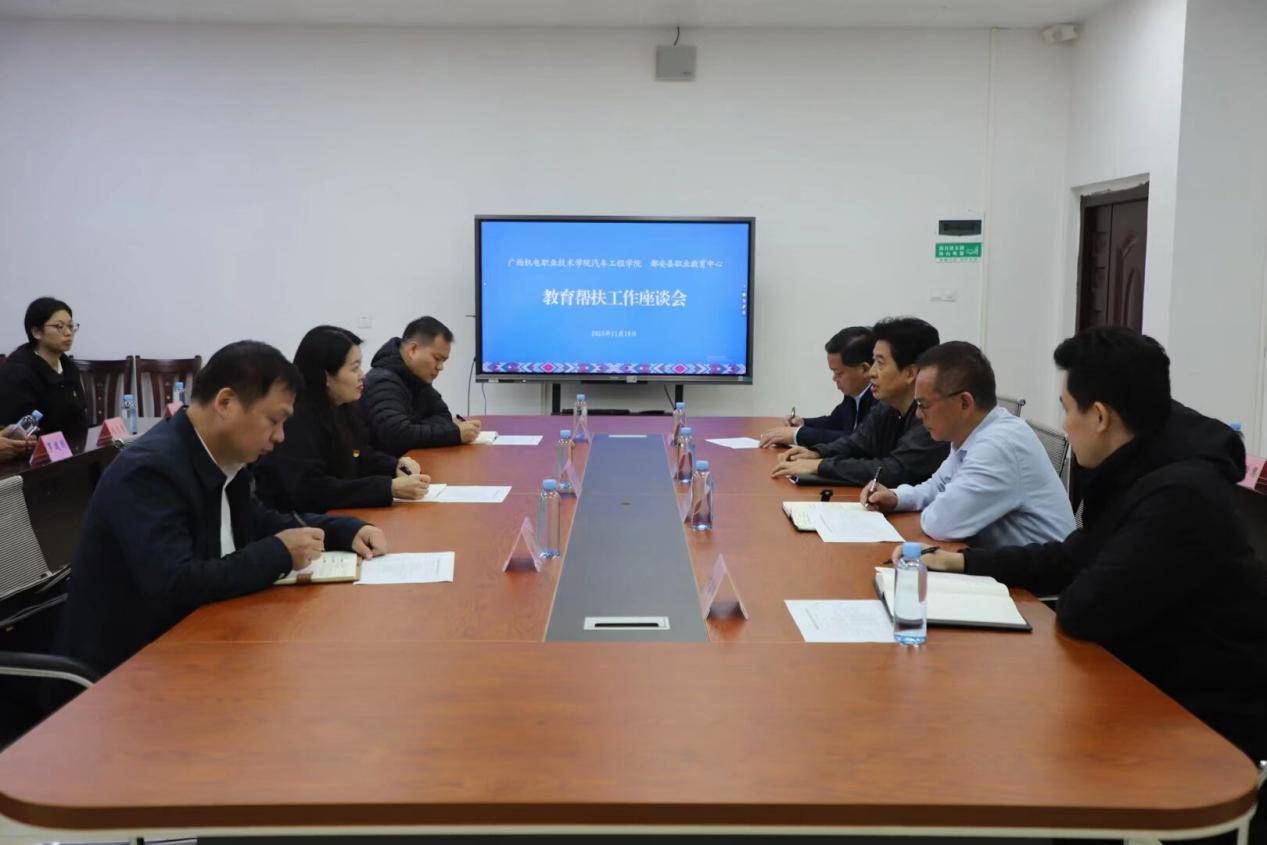 学院负责人代表学院对都安瑶族自治县职业教育中心给予帮扶教师的支持保障表示衷心感谢,并介绍了学院的基本情况及取得的成绩。双方就优质教学资源共享、技能竞赛联合备赛、学生贯通培养等具体举措达成初步共识,为深化民族地区职业教育帮扶搭建坚实桥梁。