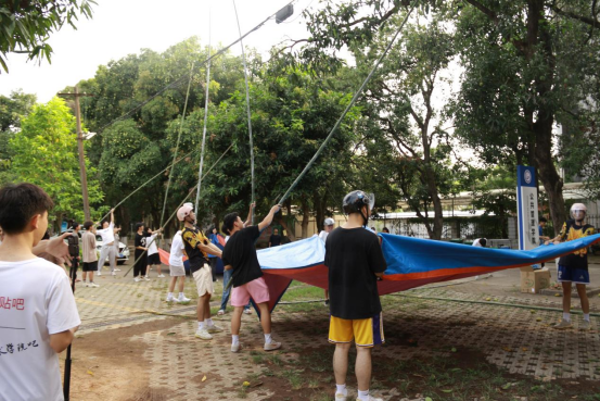 采摘活动开始前,学生党支部书记陈丽婷老师为报名担任主摘手的50名同学开展了采摘活动安全教育,并为同学们分发头盔、一次性雨衣等防护工具。活动现场,同学们有的化身手工达人,现场制作采摘神器,有的挥舞竹竿,将枝头的芒果打落;有的拉起篷布,随时准备接住掉落的芒果;有的负责装筐,有的负责搬运,有的负责分发,整个过程分工明确,配合默契,采摘现场热情高涨,一片欢声笑语。活动结束后,我院团委学生会学生干部主动清扫采摘区域。