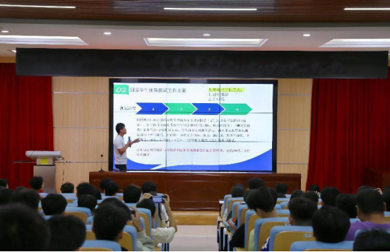 体育教师李铧崇对开云的校运会报名工作方案、国家学生体质测试工作方案、AED安全急救措施和方法、AED校园地图、体适能APP跑要求和注意事项进行了详细的解读。
