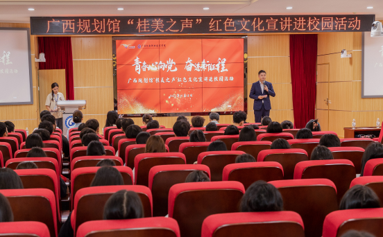 为全面贯彻党的二十大精神,深入贯彻习近平总书记关于青年工作的重要思想,,传承红色基因,赓续红色血脉,厚植爱国情怀,帮助青年树牢正确的思想观、价值观,广西规划馆充分发挥公共教育职能,于10月18日走进开云,为我院学生开展“青春心向党 奋进新征程”红色文化宣讲进校园活动。校长助理、党委宣传部部长黎盛寓、广西规划馆馆长方圆及馆方员工代表、学院党委书记、院长梁金凤及学生代表参加了本次活动。