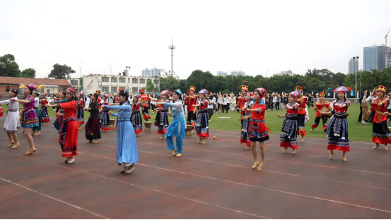 开幕式后,学校领导和同学们一起欢歌起舞,同唱民族团结歌,共舞发展跨越步。