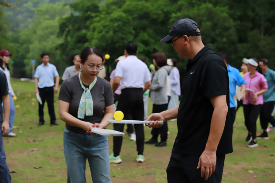 活动伊始,一个轻松愉快的开场游戏“萝卜蹲”迅速点燃了现场的气氛。大家蹲起有序,笑声不断。随后,“接飞盘”“球传千里”与“滚铁环”将活动推向了高潮。上述游戏不仅考验了大家的协调能力和团队协作能力,更在轻松的氛围中增进了彼此的了解和信任。