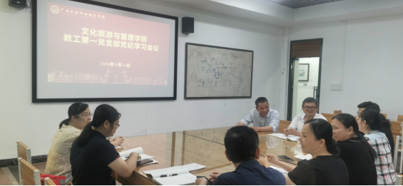 学院党委书记黄金来参与党员代表们的讨论并点评。他强调,党员同志们要逐章逐条学、联系实际学:紧扣党的政治纪律、组织纪律、廉洁纪律、群众纪律、工作纪律、生活纪律的规定要求并结合个人思想和工作实际交流学习体会,切实做到学纪、知纪、明纪、守纪。要坚持示范带动,党员干部要以身作则,以上率下,自觉将纪律要求内化于心、外化于行,要将党纪学习贯彻到工作日常,党员教师们要凝心聚力,办出有水平、有特色的文旅学院,为学校的高质量发展贡献力量。