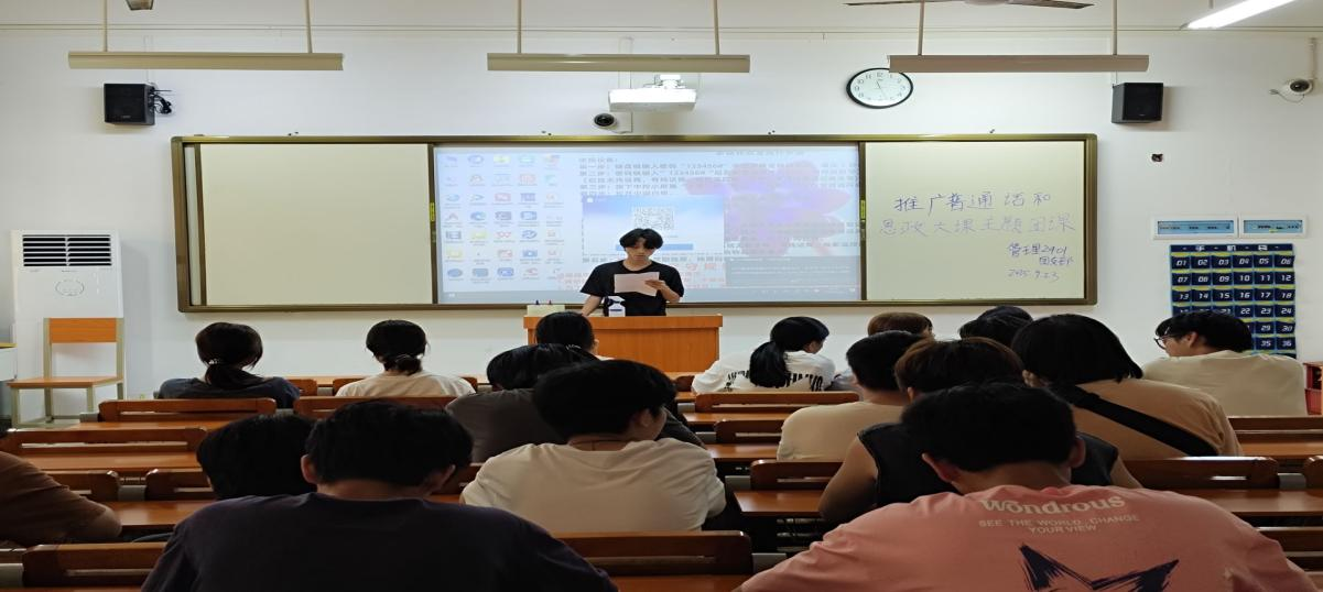 活动期间,各团支部积极创新活动形式,推出“非遗里的普通话”系列主题团课。通过组织观看绣球制作、壮锦编织等民族技艺视频,引导学生在动手实践中使用普通话讲解工艺背后的文化内涵。其中“壮语—普通话”互译擂台赛环节吸引了许多少数民族学生踊跃参与,地方谚语互译挑战更是妙趣横生,成为活动现场的一大亮点。
