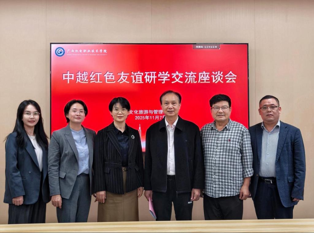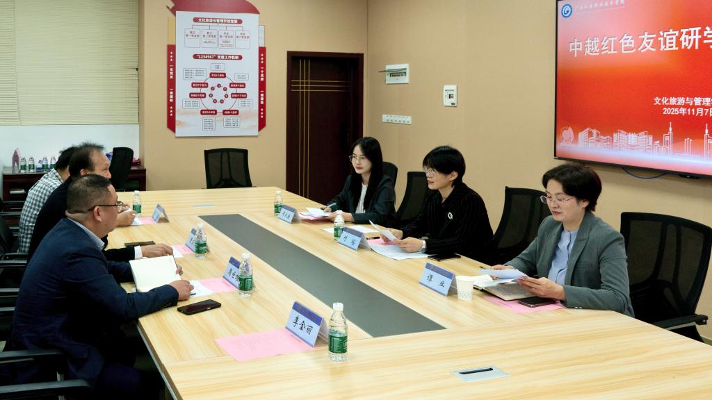 11月7日,广西文旅商贸产业发展研究院院长周世雄、广西网络文化协会会长黄云龙、广西老龄产业协会副会长龙军胜一行来访我院,围绕桂越红色研学合作开展深入交流。学院院长付瑶、教研室主任谭业及专业教师代表参加座谈。