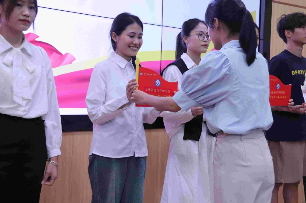 授牌仪式上,学生党支部书记陈丽婷强调,学生示范宿舍创建是深入开展“党建带团建”、拓展党建育人阵地、推动学院“三全育人”工作走深、走实的前沿阵地。希望获得授牌的入党积极分子、团支书和优秀学生干部切实增强责任感和使命感,自觉做到亮身份、当先锋、树形象、作表率。同时,她号召广大同学积极参与学院学生宿舍区文化长廊建设中,将宿舍区打造成为引领青年学生健康成长的重要阵地。