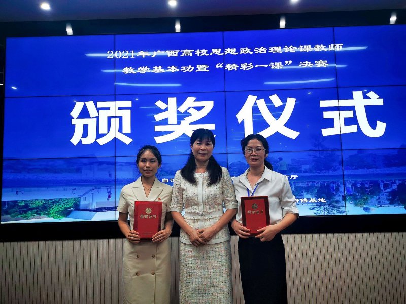 2021年9月25日,广西高校思政课教师教学基本功暨“精彩一课”比赛决赛落下帷幕。此次比赛分为初赛和决赛两个阶段,全区高校本专科院校在内共249名教师参加此次比赛,其中31名教师进入现场决赛。比赛最终评出一等奖9项(教授组2项、青年组7项),二等奖22项,三等奖80项。