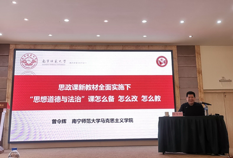 本次培训班请到了新教材编写组的主要成员陈大文、宇文利等6位教授对教学重难点进行分章节、无遗漏的专题辅导,邀请南宁师范大学马克思主义学院院长、教育部高校思想政治教育工作队伍培训研修中心副主任曾令辉教授作教学指导,还请到首届全国思政课教学展示活动特等奖或一等奖获得者、广西思政课精彩一课“思想道德与法治”课一等奖获得者等7位区内外优秀教师分章讲授示范课,为参训学员提供了系统全面、针对性强的培训指导。